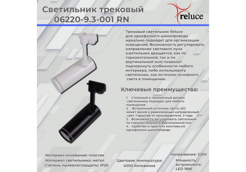 Трековый однофазный светильник Reluce 06220-9.3-001RN LED18W WT