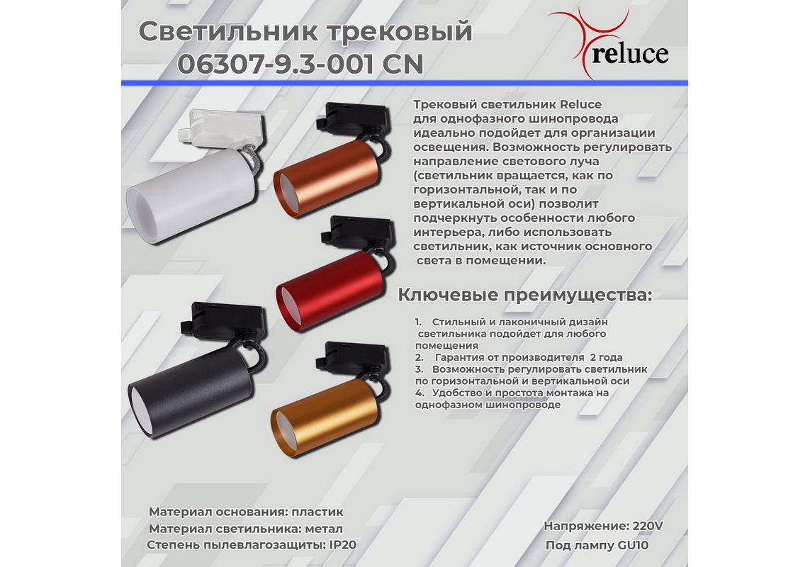Трековый однофазный светильник Reluce 06307-9.3-001CN GU10 SCF