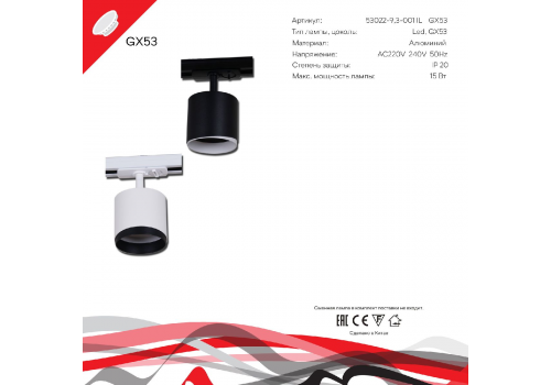 Трековый однофазный светильник Reluce 53022-9.3-001IL GX53 WT