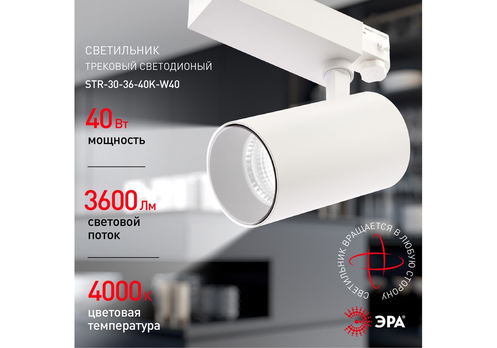Трековый светильник ЭРА SТR-30-36-40K-W40 Б0049755