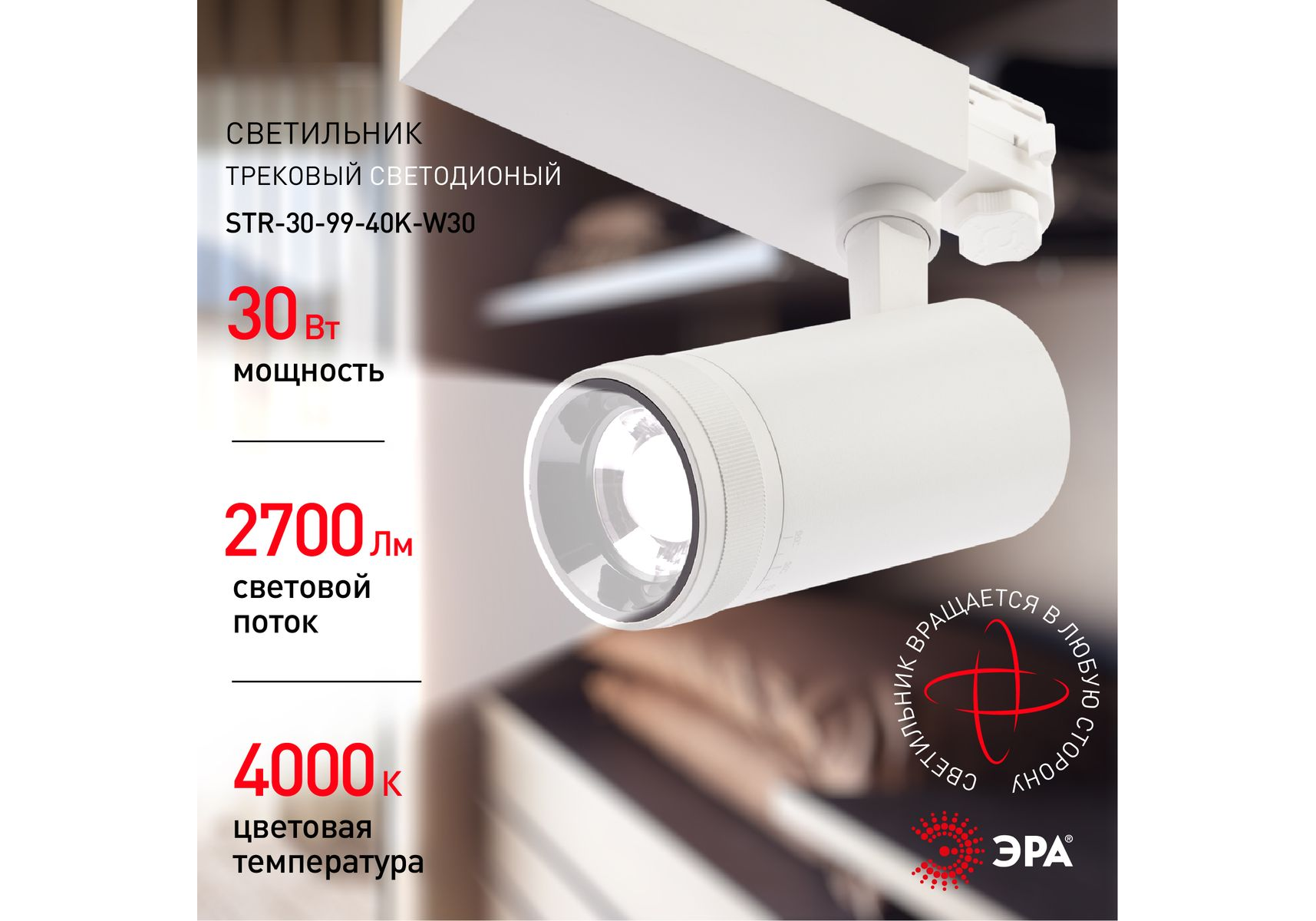 Трековый светильник ЭРА STR-30-99-40K-W30 Б0049785