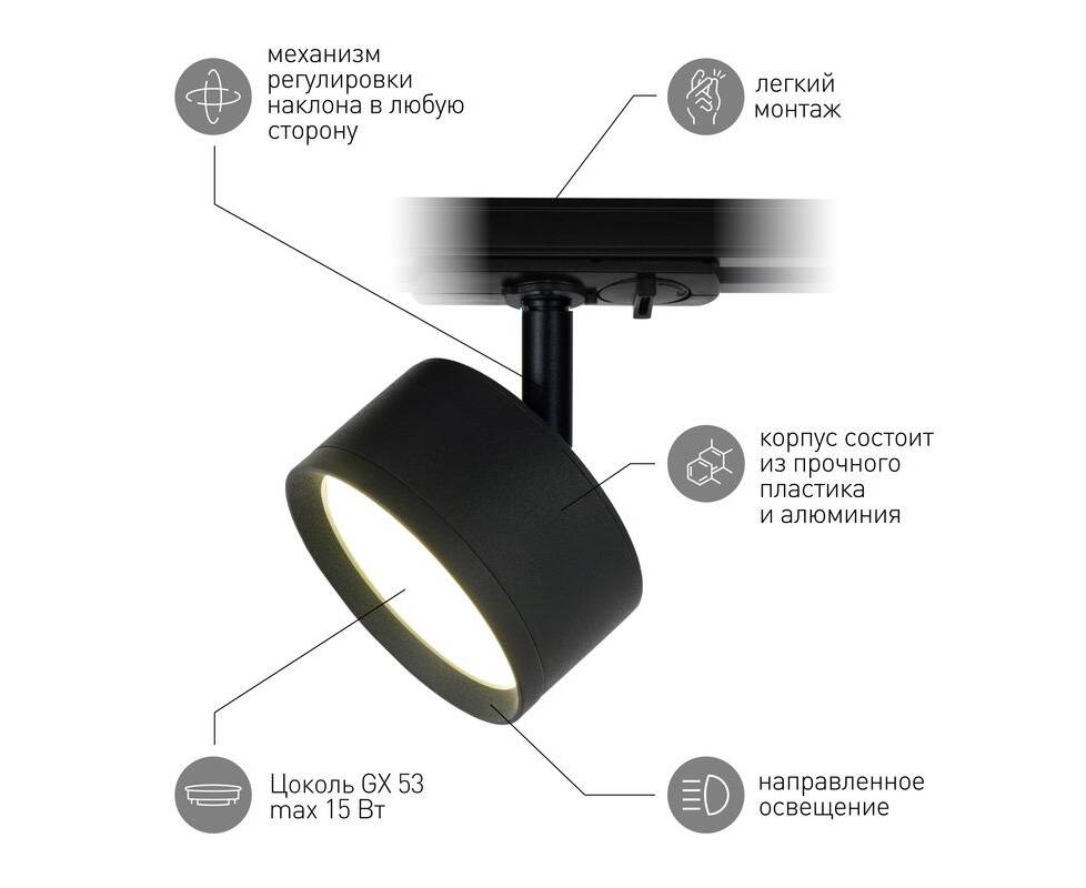 Трековый светильник Эра TR48 - GX53 BK Б0054159