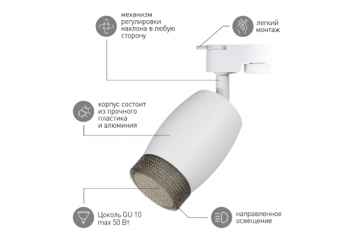 Трековый светильник Эра TR51 - GU10 WH Б0054163