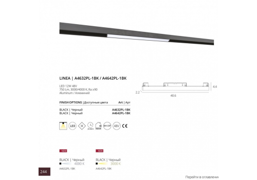 Трековый светодиодный светильник для магнитного шинопровода Arte Lamp Linea A4642PL-1BK
