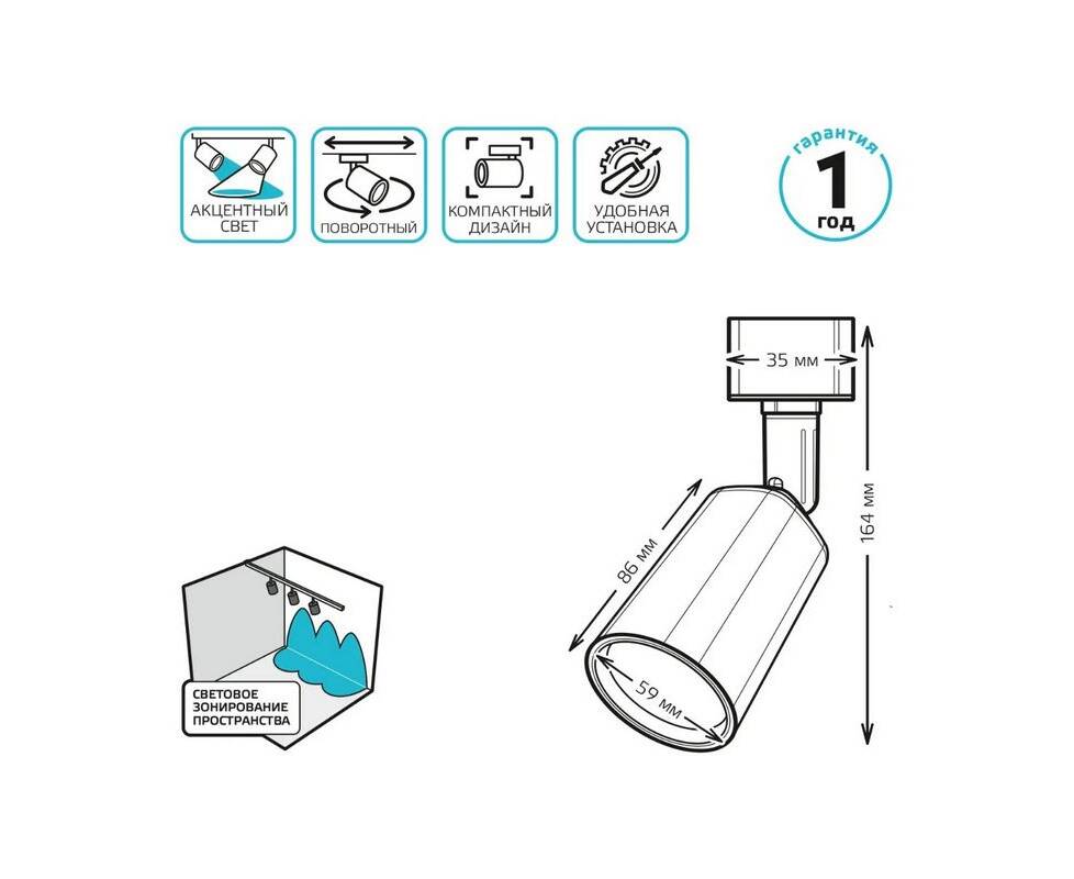 Трековый светодиодный светильник Gauss TR090