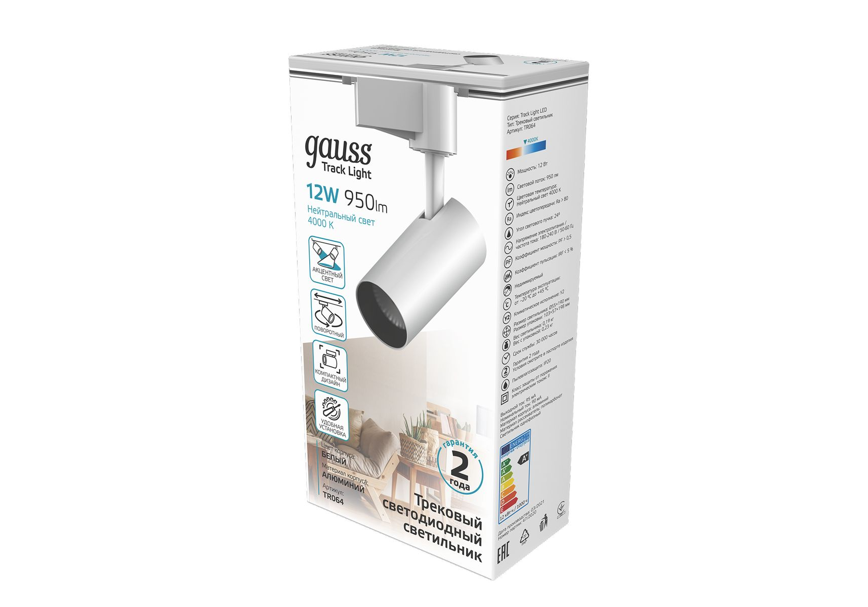 Трековый светодиодный светильник Gauss Track Light Led TR064
