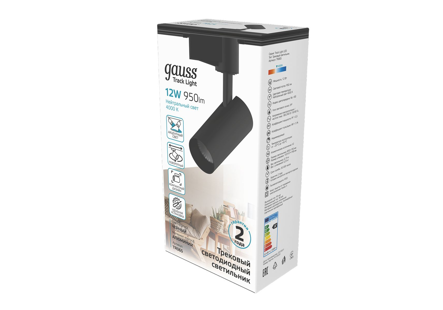 Трековый светодиодный светильник Gauss Track Light Led TR065
