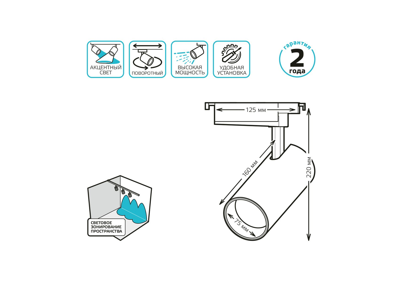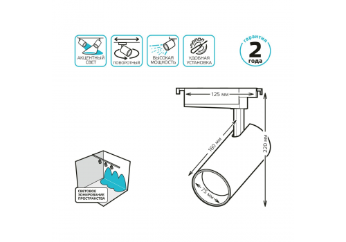 Трековый светодиодный светильник Gauss Track Light Led TR073