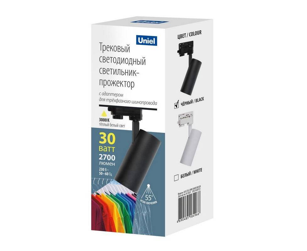 Трековый светодиодный светильник Uniel ULB-T55-30W/3000K Black UL-00011208