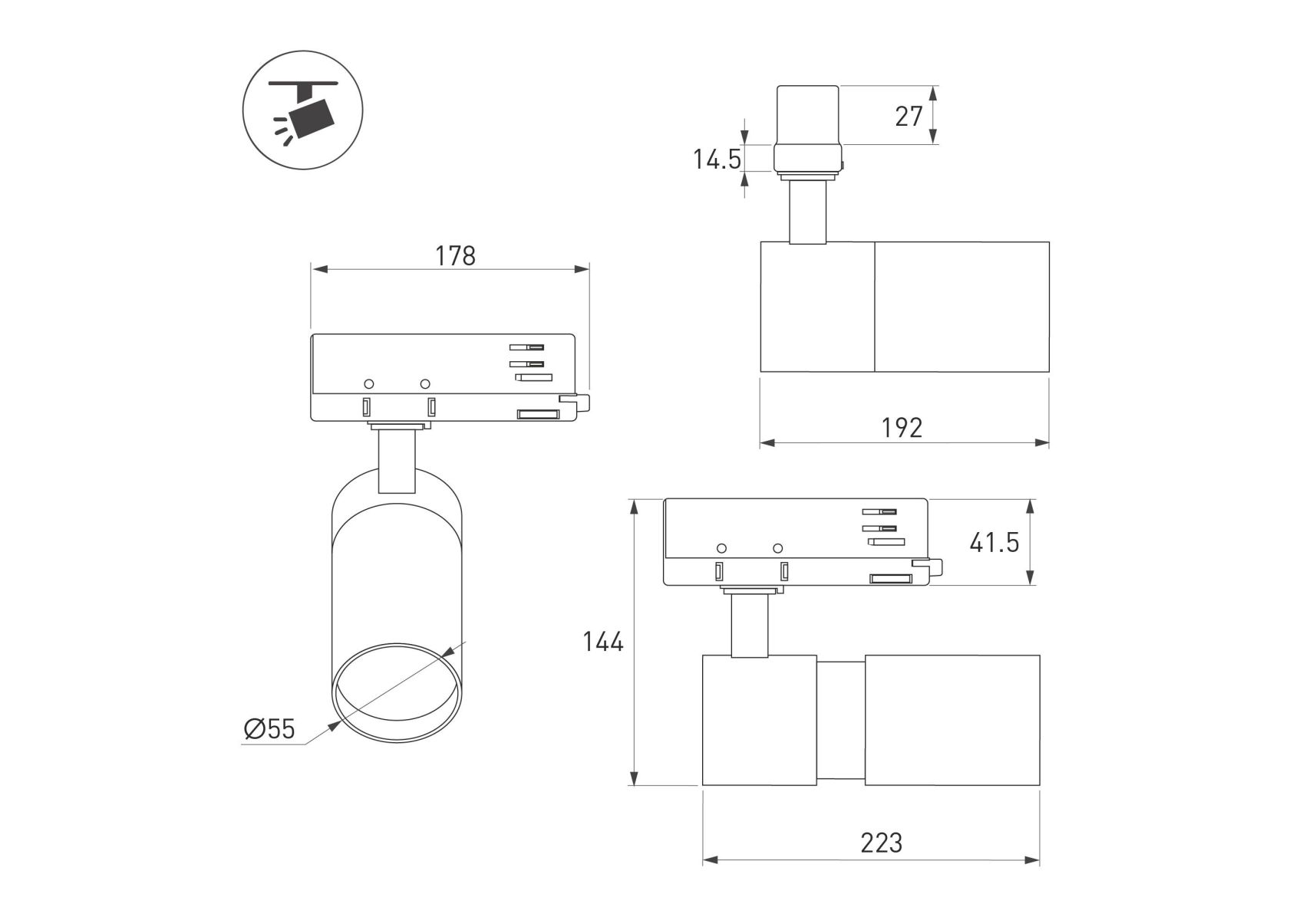 Трековый трехфазный светильник Arlight LGD-ARTEMIS-TRACK-4TR-R55-12W Day4000 (BK, 8-80 deg, 230V, DA