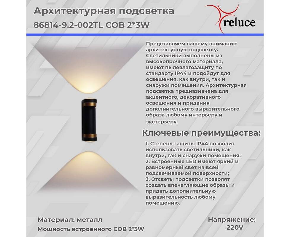 Архитектурный светильник Reluce 86814-9.2-002TL COB2*3W BK+GD