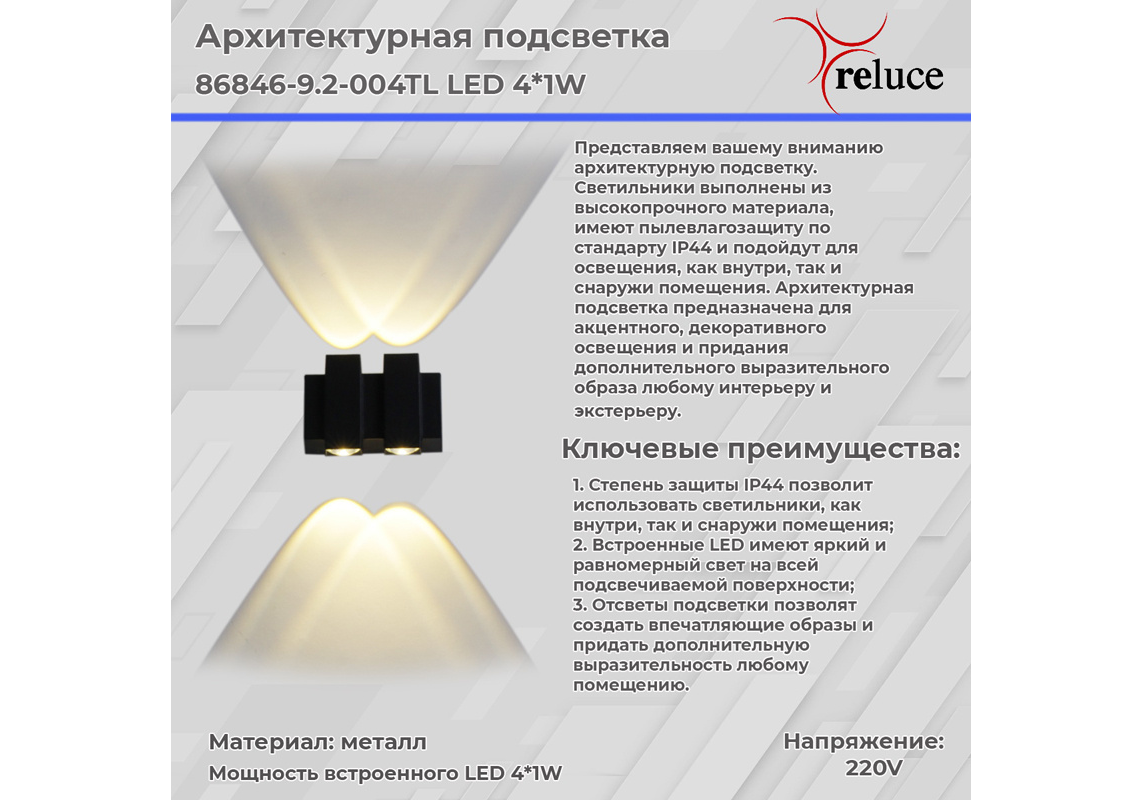 Архитектурный светильник Reluce 86846-9.2-004TL LED4*1W BK