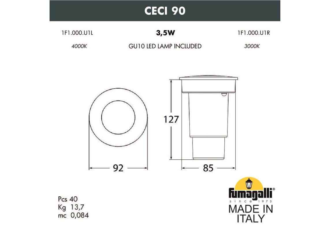 Тротуарный светильник Fumagalli 1F1.000.000.AXU1L