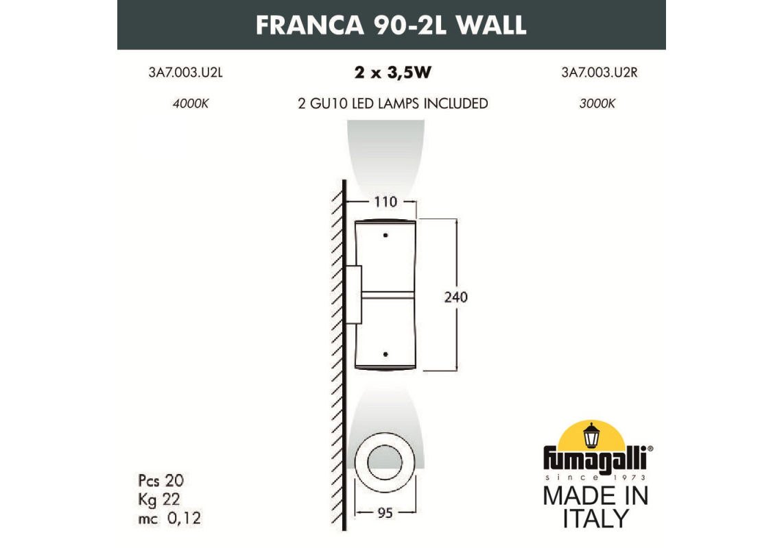 Уличный настенный светильник Fumagalli 3A7.003.000.LXU2L