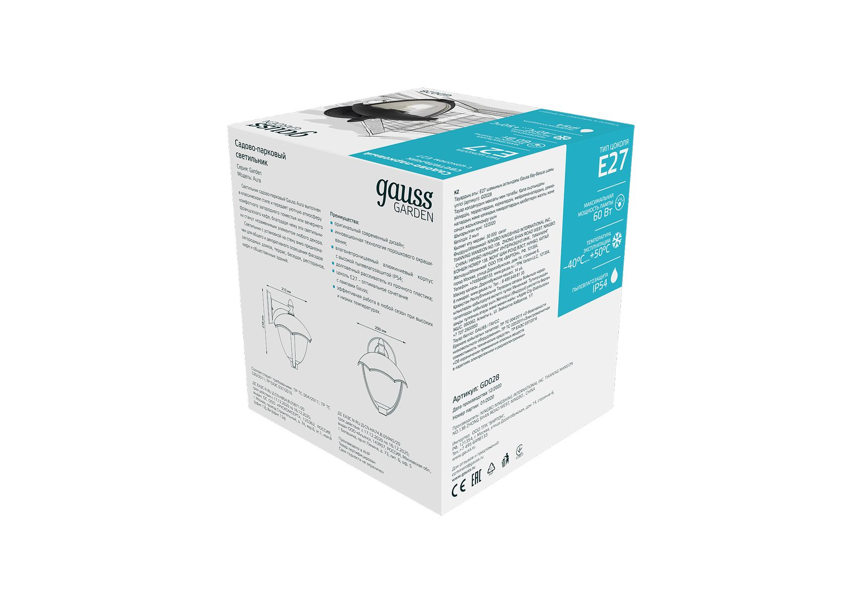 Уличный настенный светильник Gauss Aura GD028
