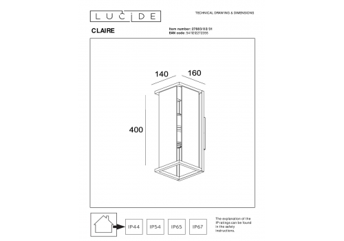Уличный настенный светильник Lucide Claire 27883/02/31