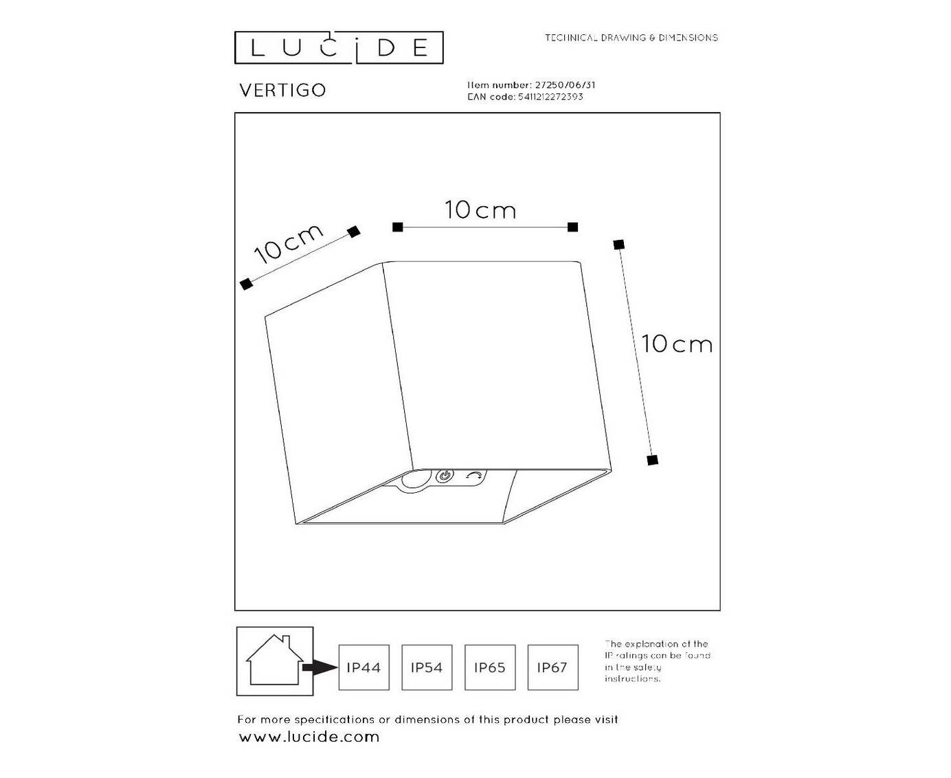 Уличный настенный светильник Lucide Vertigo 27250/06/31