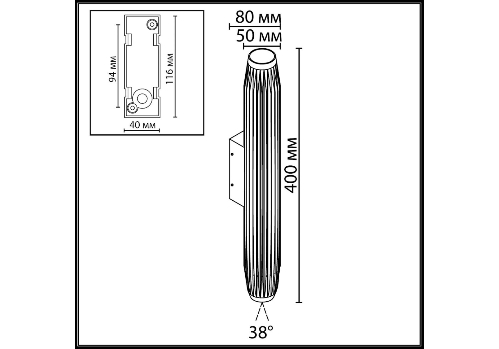 Площадь освещения, м2: