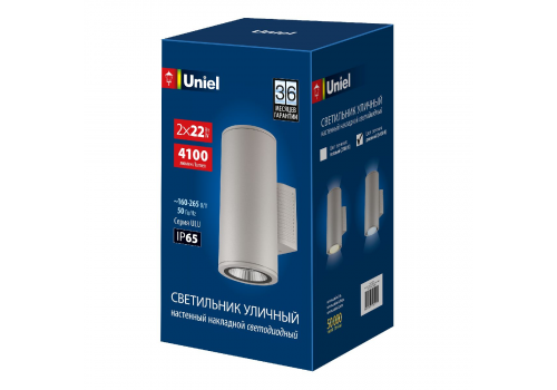 Уличный настенный светильник Uniel ULU-S22D-2x22W/6400K IP65 LIGHT GREY UL-00011087