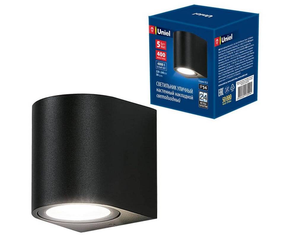 Уличный настенный светодиодный светильник Uniel ULU-S04A-5W/4000K IP54 Black UL-00006805