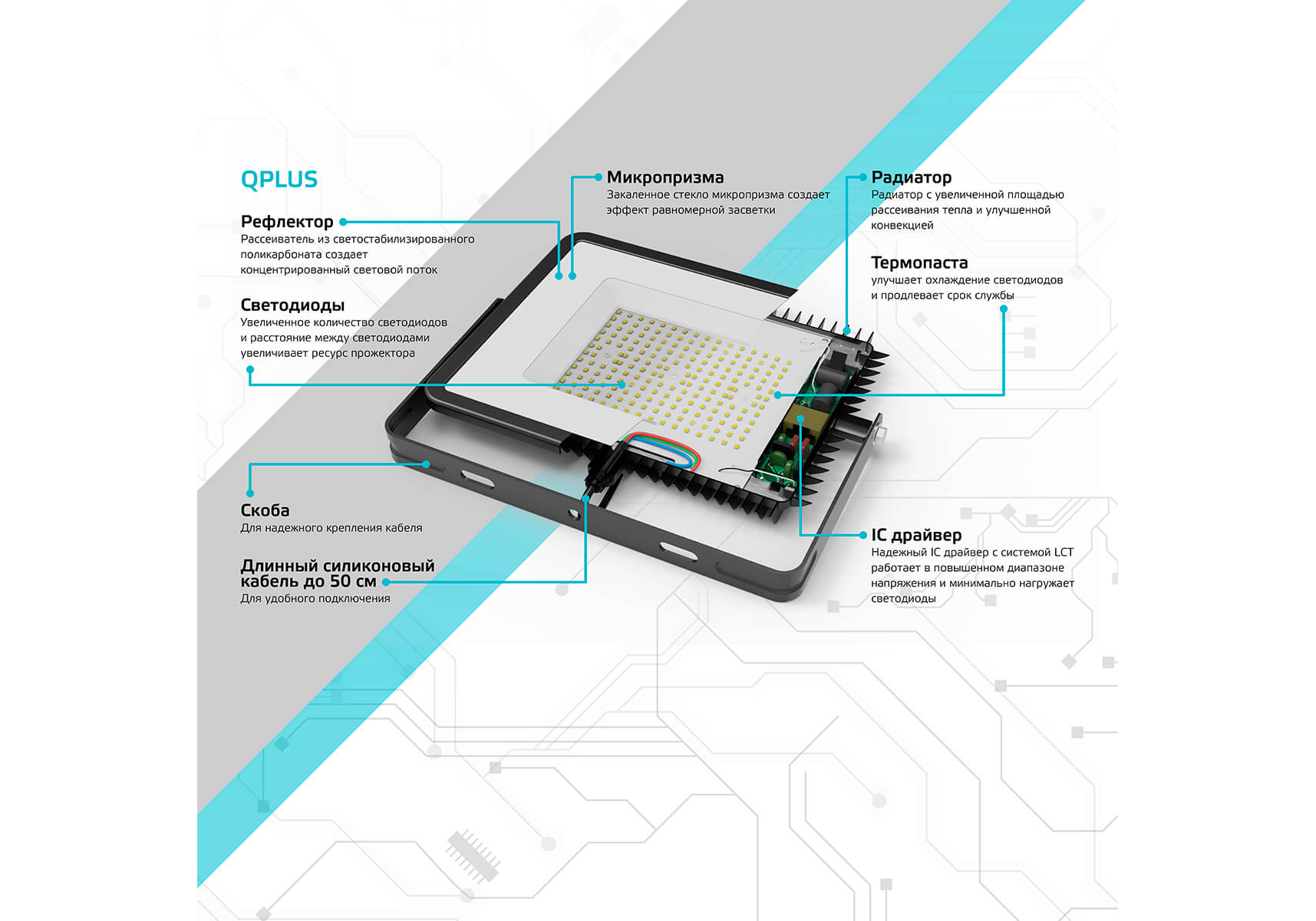Прожектор светодиодный Gauss Qplus 30W 6500К 613511330