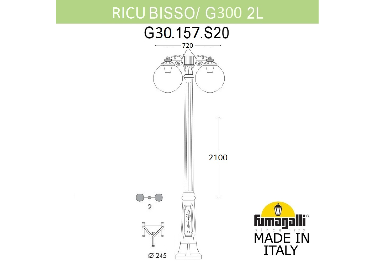 Парковый светильник Fumagalli Globe G30.157.S20.BZF1RDN