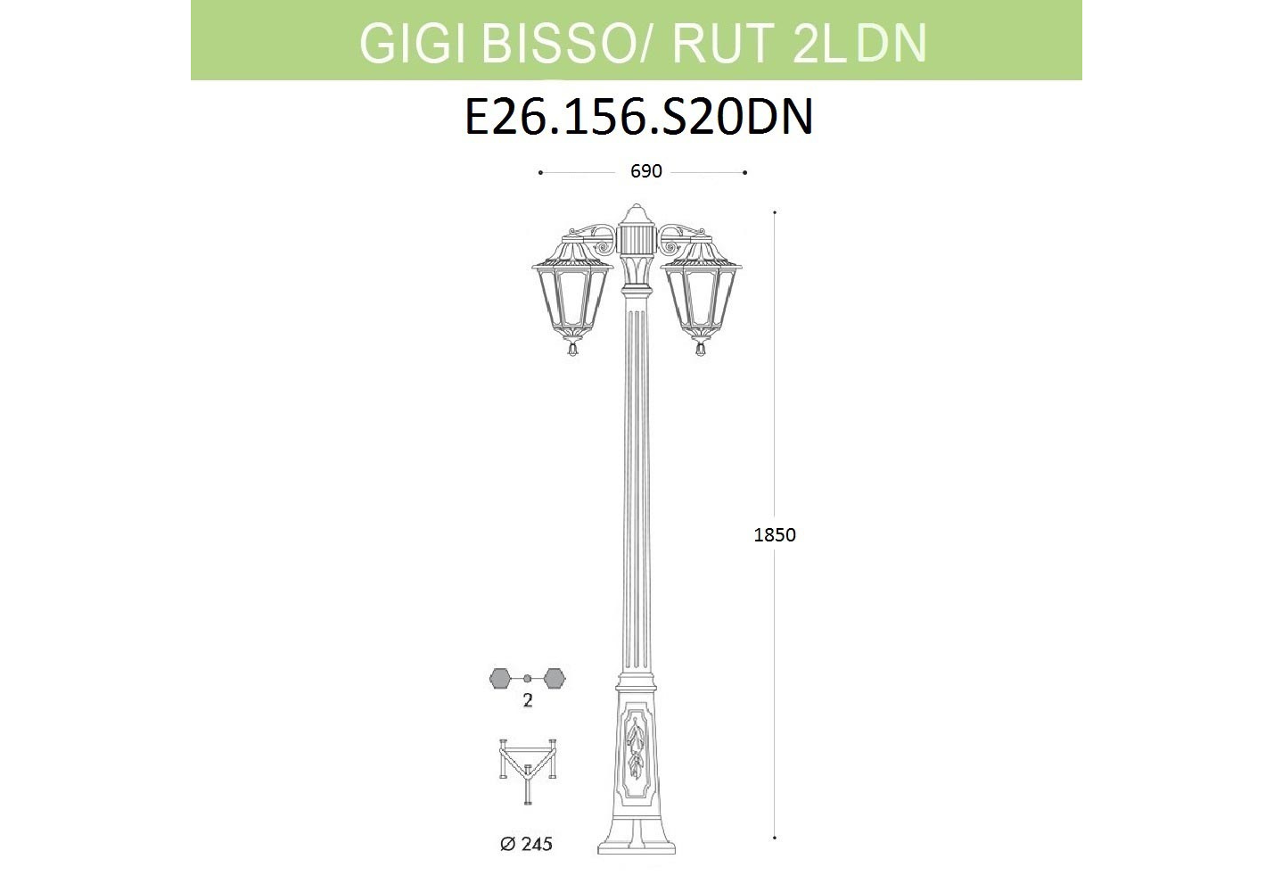 Уличный фонарь Fumagalli Gigi Bisso/Rut 2L Dn E26.156.S20.BXF1RDN