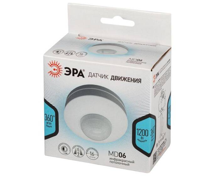 Датчик движения инфракрасный ЭРА MD 06 потолочный 1200Вт 16м Б0043811
