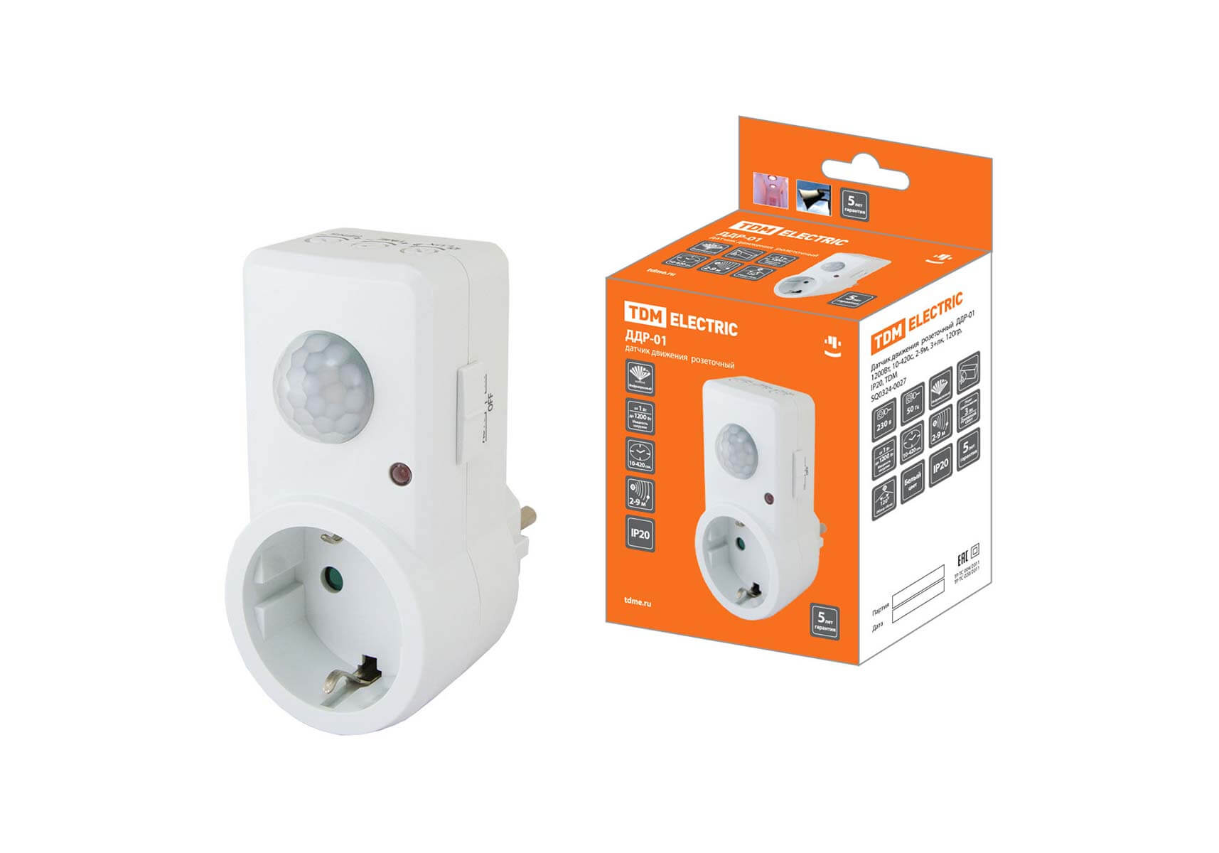 Датчик движения инфракрасный TDM Electric розеточный ДДР-01 SQ0324-0027